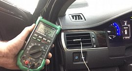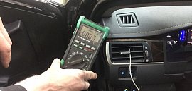Приступаем к работе. Первым делом производим диагностику системы кондиционирования, проверяем состояние салонного фильтра, определяем мощность потока из воздуховодов системы, а также измеряем температуру и убеждаемся что она выходит за пределы нормы (+22°С).