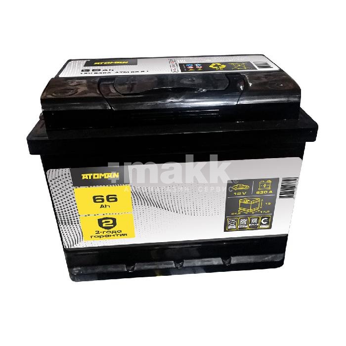 Аккумуляторная батарея "ATOMAN" ёмкостью 66 Ач, обратной полярности произведена на аккумуляторном заводе "Актех" на современном оборудовании компаний.