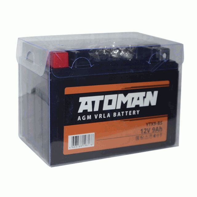В мото аккумуляторах ATOMAN (технология AGM) в качестве сепаратора для удержания электролита используются пластины из сверхтонких стеклянных волокон,
