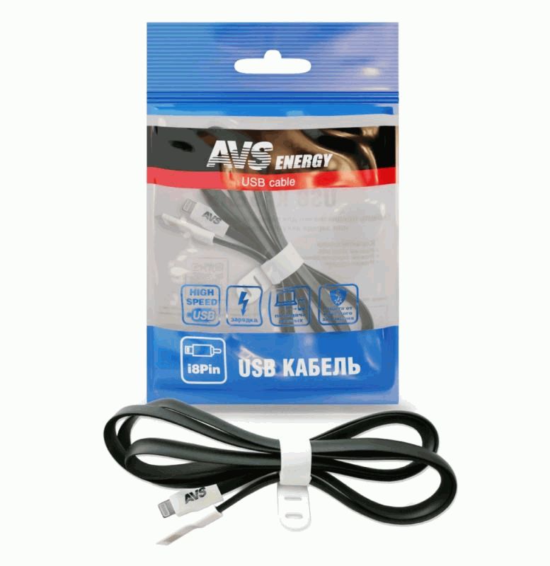 Кабель iPhone 5/6/7/8/X 8pin AVS 1м черный IP-551