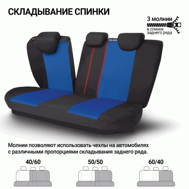 Молнии в спинке заднего ряда для модульных сидений с секциями 40:60, 50:50, 60:40.