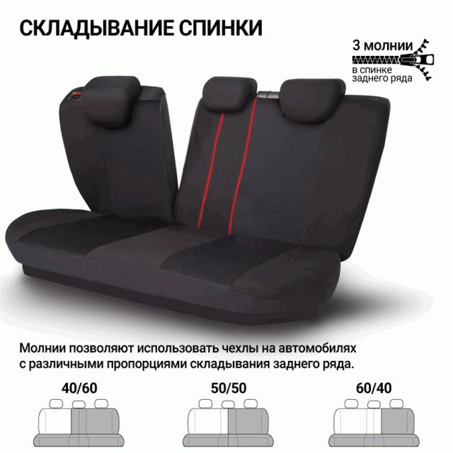 Молнии в спинке заднего ряда разработаныдля модульных сидений с секциями 40:60, 50:50, 60:40.