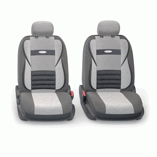 Мультиконтурные вставки расположены на уровне плеч, поясницы и по бокам спины. Лаконичное сочетаниетемно-серого и светло-серого оттенков велюра отлично впишется в автомобиль с любым интерьеров.