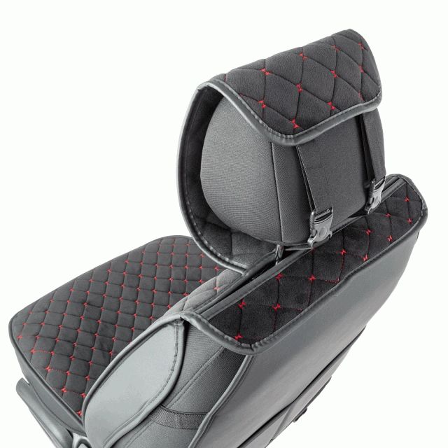 Оригинальный дизайн с ромбовидной прострочкой дополнят интерьер салона любого автомобиля, а прочный и приятный к телу материал алькантара увеличивает срок службы накидки и защищает ее от загрязнений.