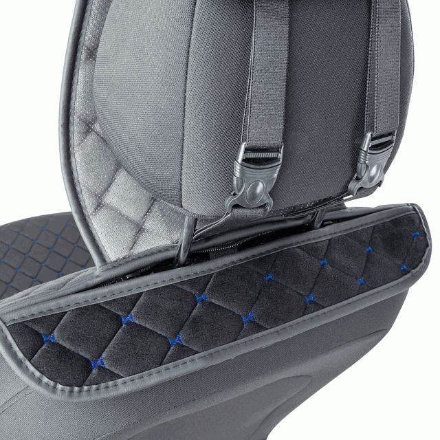 Оригинальный дизайн с ромбовидной прострочкой дополнит интерьер салона любого автомобиля, а прочный и приятный к телу материал алькантара увеличит срок службы накидки и защитит ее от загрязнений.