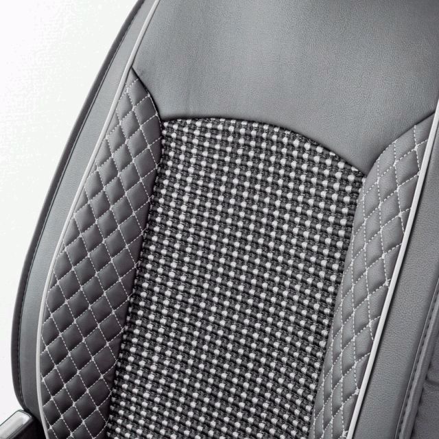 Комплект универсальных каркасных накидок на передние сиденья CAR PERFORMANCE CUS-2102 из экокожи, отлично обеспечивают защиту заводской обшивки передних кресел. Оригинальный дизайн с ромбовидной прострочкой и вставками из ткани с объемным плетением, дополнит интерьер салона любого автомобиля, а прочный материал увеличит срок службы накидки и защитит ее от загрязнений.