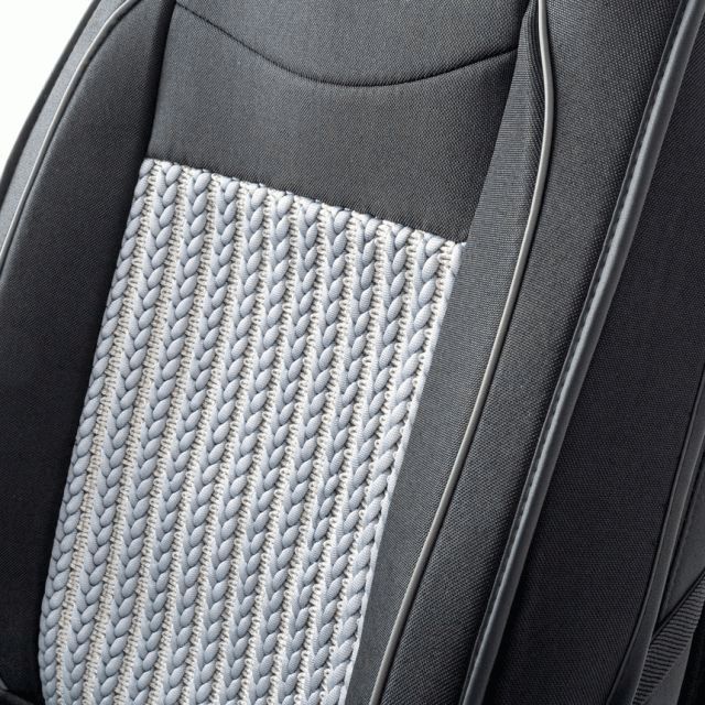 Оригинальный дизайн со вставкой из ткани с объемным плетением в виде косички, дополнит интерьер салона любого автомобиля, а прочный и приятный к телу материал увеличит срок службы накидки и защитит ее от загрязнений.