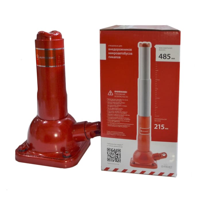 Автомобильный домкрат с телескопической опорой поднимает вес до 2 тонн. Высота от 215 до 485 мм. С домкратом можно работать, не сгибаясь. Длинный вороток дает длину рычага в 85 см. Корпус домкрата стальной с антикоррозийным покрытием. Яркий красный цвет будет заметен даже в темное время суток. Тип домкрата — механический.