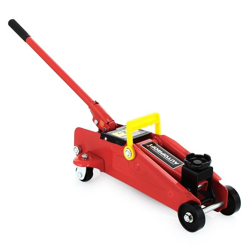 Автомобильный подкатной домкрат с простой и надежной конструкцией. Работает на любой твердой и ровной поверхности. Домкрат поднимает до 2 тонн веса на максимальную высоту 33 см. Поставляется в удобном для хранении и переноске пластиковом кейсе. Обратите внимание! Домкрат создан только для подъема груза. После подъема груз должен быть зафиксирован на страховочных опорах (продаются отдельно). Сам домкрат тоже оснащен пластиковой ручкой и металлическими колесами. В сложенном состоянии высота устройства 13,5 см. Вес самого домкрата — 9,75 кг.