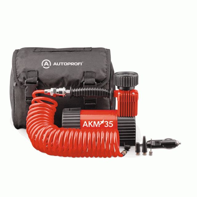 Компрессор 35л/мин 180W 12V 10Атм металлический поршень, в компл 3 насадки AUTOPROFI AKM-35