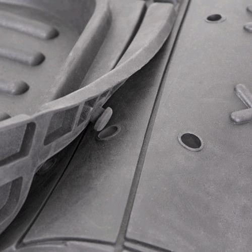 Коврики изготавливаются из термопласта-эластомера, который отличается небольшим весом, отсутствием характерного для резины запаха и сохраняет эластичность при экстремально низких температурах – до -50 °С. Материал устойчив к износу и воздействию агрессивных веществ – масла, топлива, дорожных реагентов и т.д. Высокие фрикционные свойства поверхности ковриков не дают им скользить по салону и под ногами.