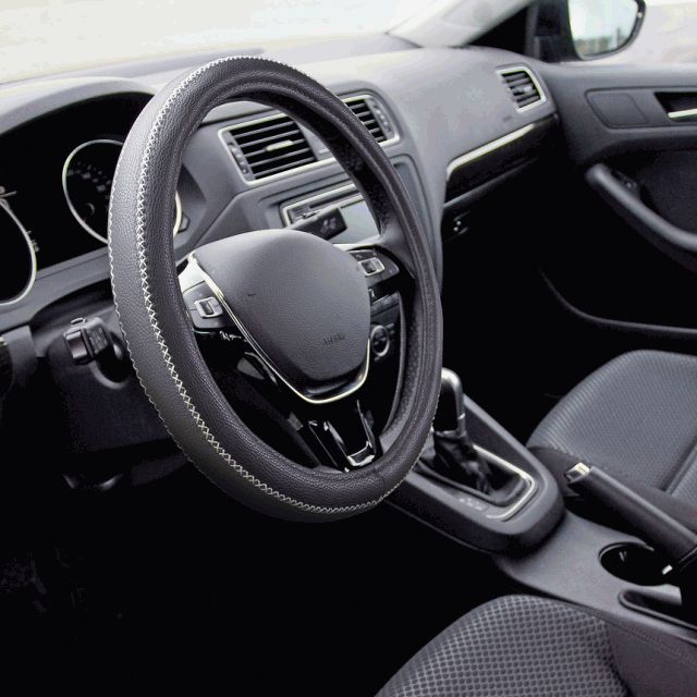 Быстрый просмотр Кожаная оплётка рулевого колеса AP-1080 BK/GY (M)