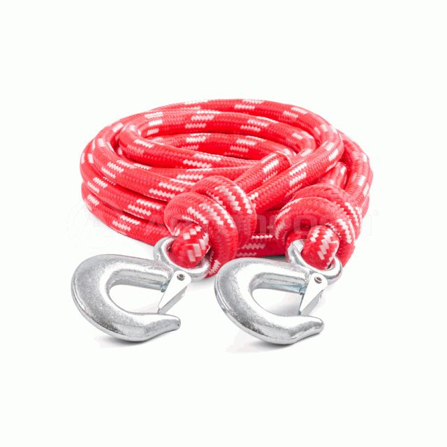 Веревочный буксировочный трос «AUTOPROFI» тягового типа предназначен для плавной буксировки автомобилей и других транспортных средств, общей массой не более 5 тонн, от места поломки (неисправности), по ровной дороге, до места ремонта. Тросы изготавливаются из полипропиленовой мультифиламентной нити, а петли и крепления прошиты прочной капроновой нитью. Полипропиленовый трос отличается надежностью, не деформируется и не впитывает влагу.