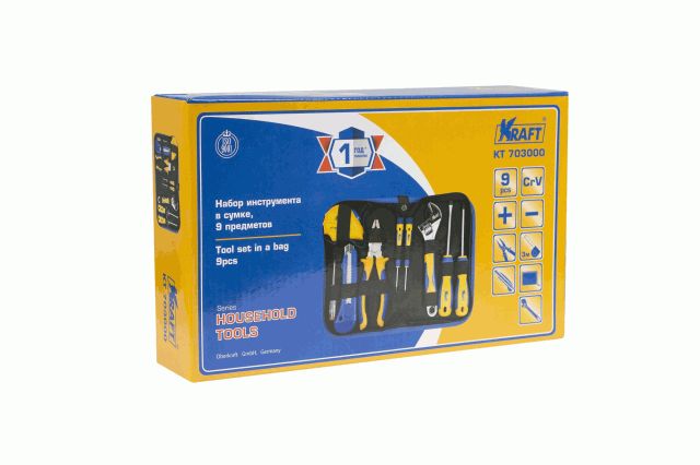 Набор инструмента 9 предметов "Кraft 703000" производится из высококачественных сплавов, обеспечивающих долгое и надёжное применение, а удобные двухкомпонентные рукоятки придают комфортность и легкость любым слесарно-монтажным операциям. Данные наборы идеально подходят для проведения хозяйственно-бытовых работ и для работ по обслуживанию авто-мототехники.