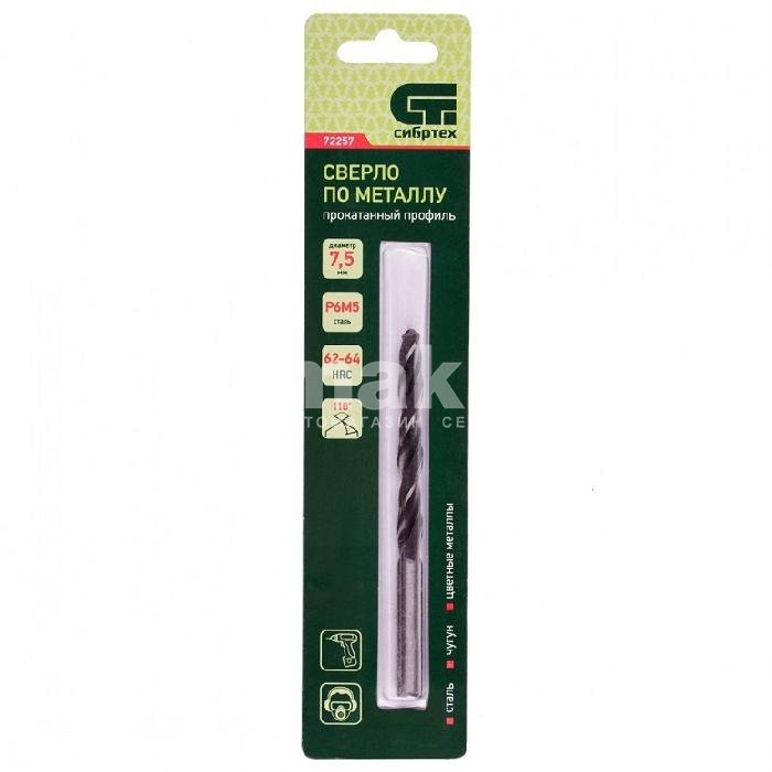Сверло по металлу, 7,5 мм Р6М5 Сибртех