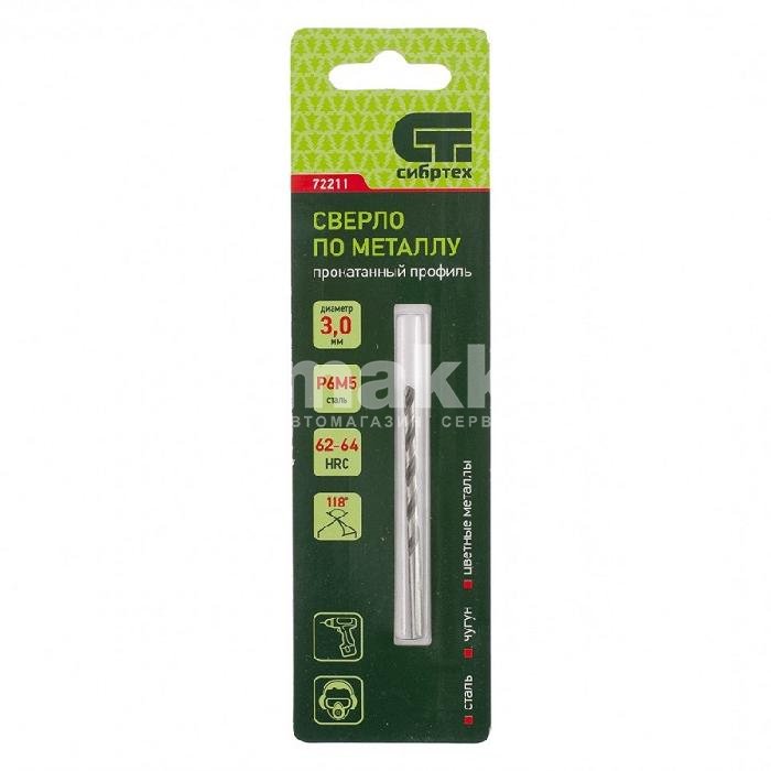 Сверло по металлу, 3,0 мм Р6М5 Сибртех