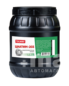 Циатим-203 Oilway Антифрикционная низкотемпературная смазка, изготавливаемая из нефтяного трансформаторного масла, загущенного литиевым мылом технического саломаса и осерненного асидола; содержит вязкостную и противозадирную присадку. Одна из лучших морозостойких смазок отечественного производства. Работоспособна в диапазоне температур от -50 °С до +100 °С. Отличается хорошей химической и коллоидной стабильностью, водостойкостью и противоизносными характеристиками. Верхняя рабочая температура: +90 °С.