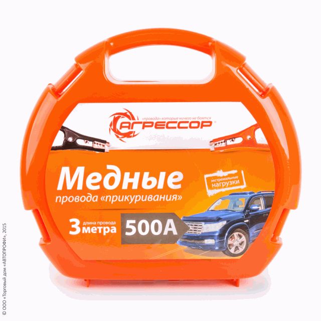 AGR-500 Провода пусковые медные 500А Агрессор 3м пластиковый кейс 6шт/уп
