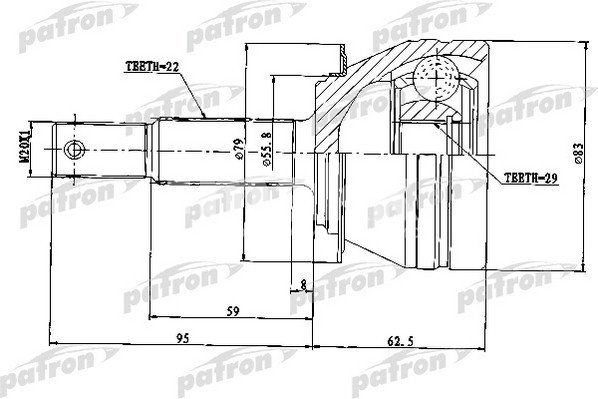 ШРУС наружный DAEWOO NEXIA 95-97 22x52x29 PCV1234 PATRON